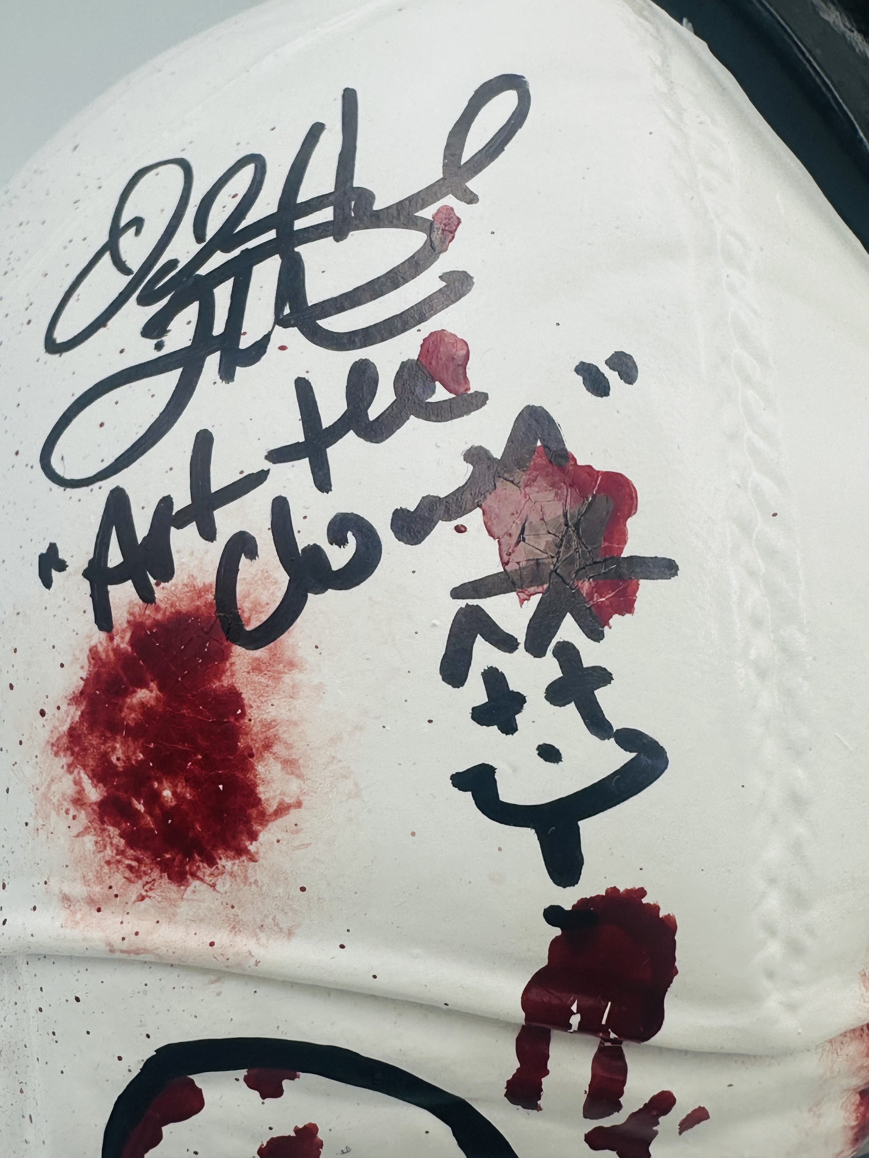 Secure this David Howard Thornton & Mike Giannelli Signed Art the Clown Mask – BAS Certified today and add a rare centerpiece to your horror collection before it’s gone.