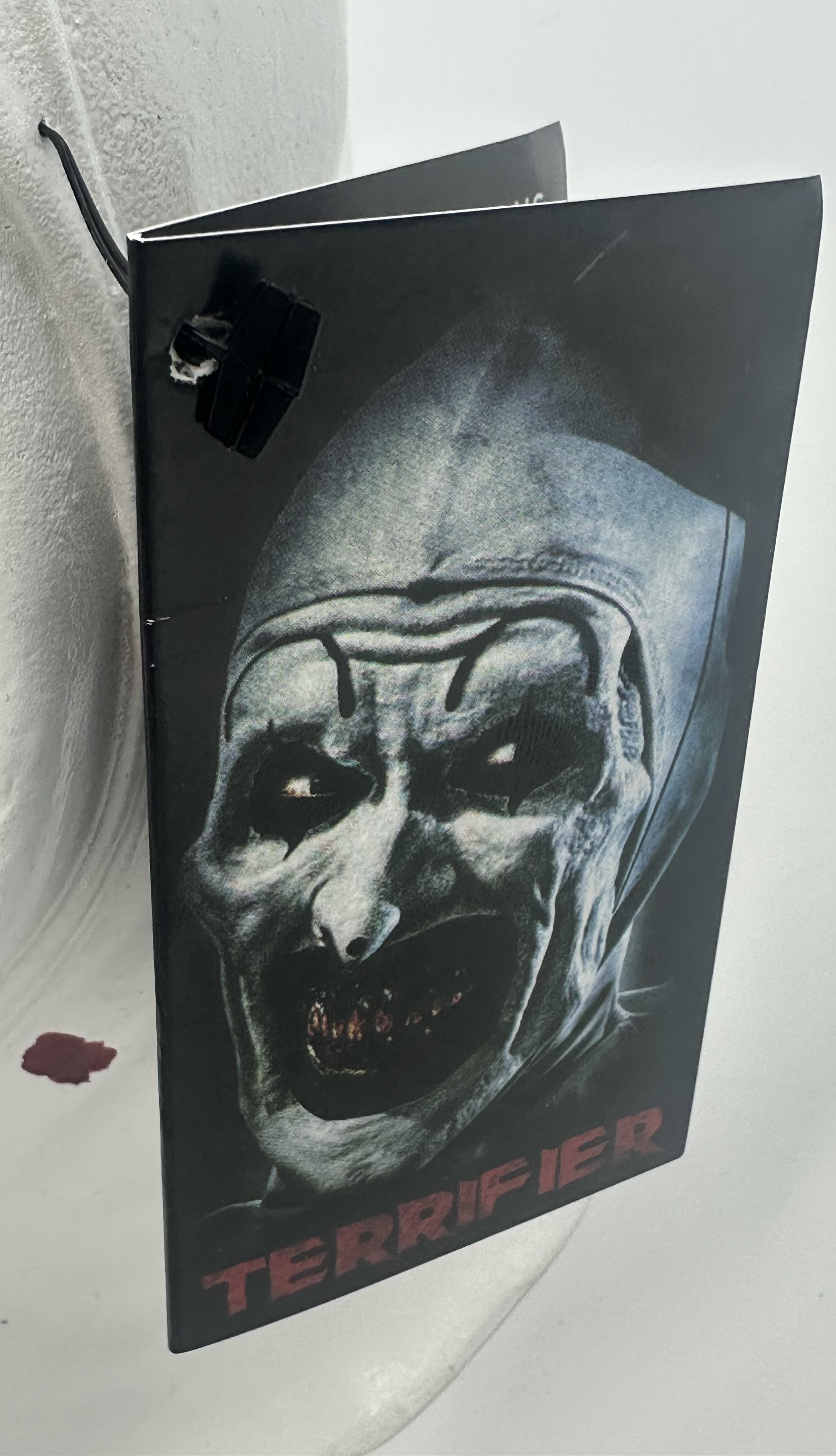 This collectible features an officially produced Trick or Treat Studios Art the Clown mask, known for its high-quality design and screen-accurate detail.