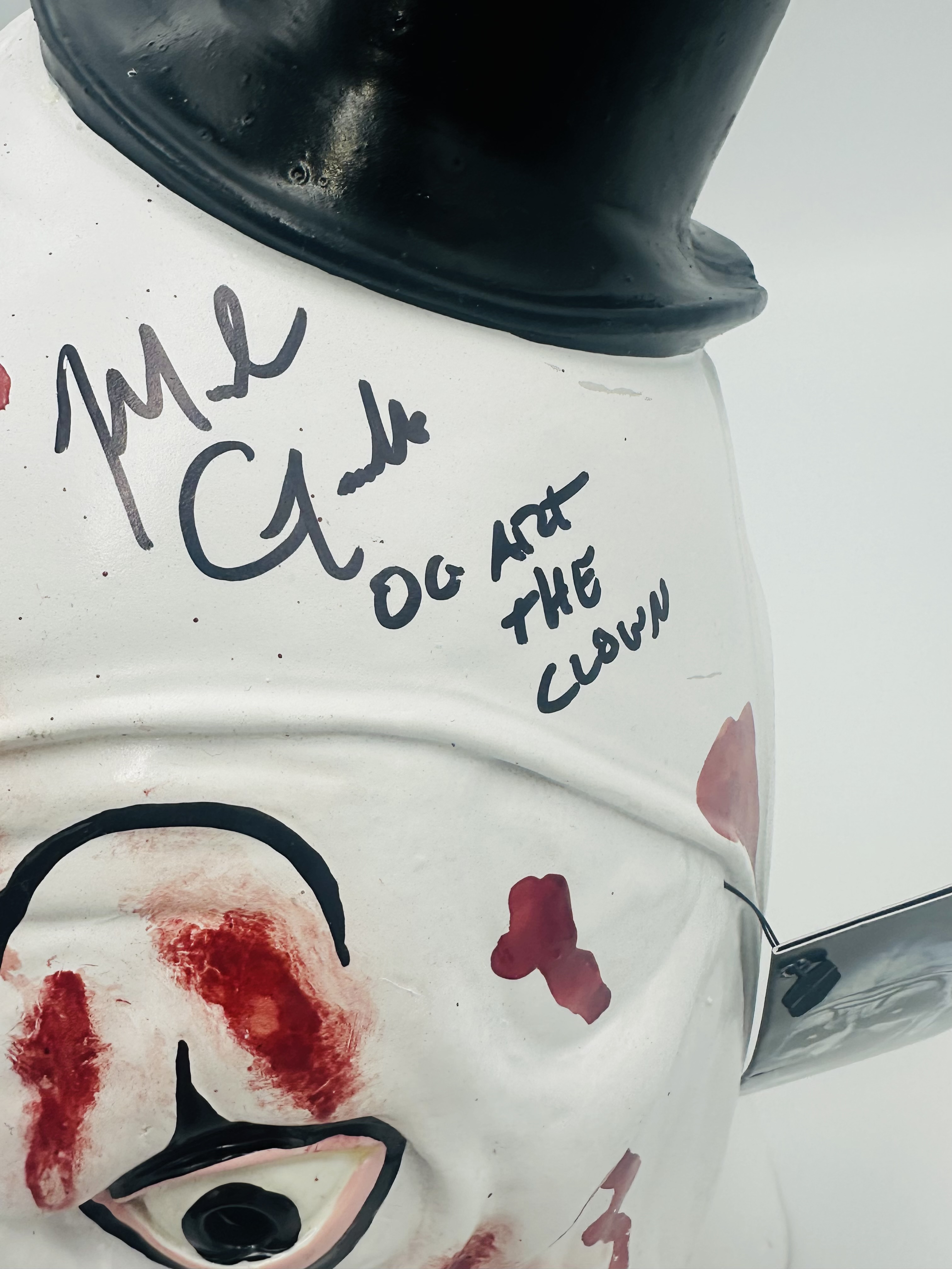 This Art the Clown mask has been personally hand-signed by David Howard Thornton and Mike Giannelli, both known for portraying Art the Clown in the Terrifier franchise and earlier appearances.