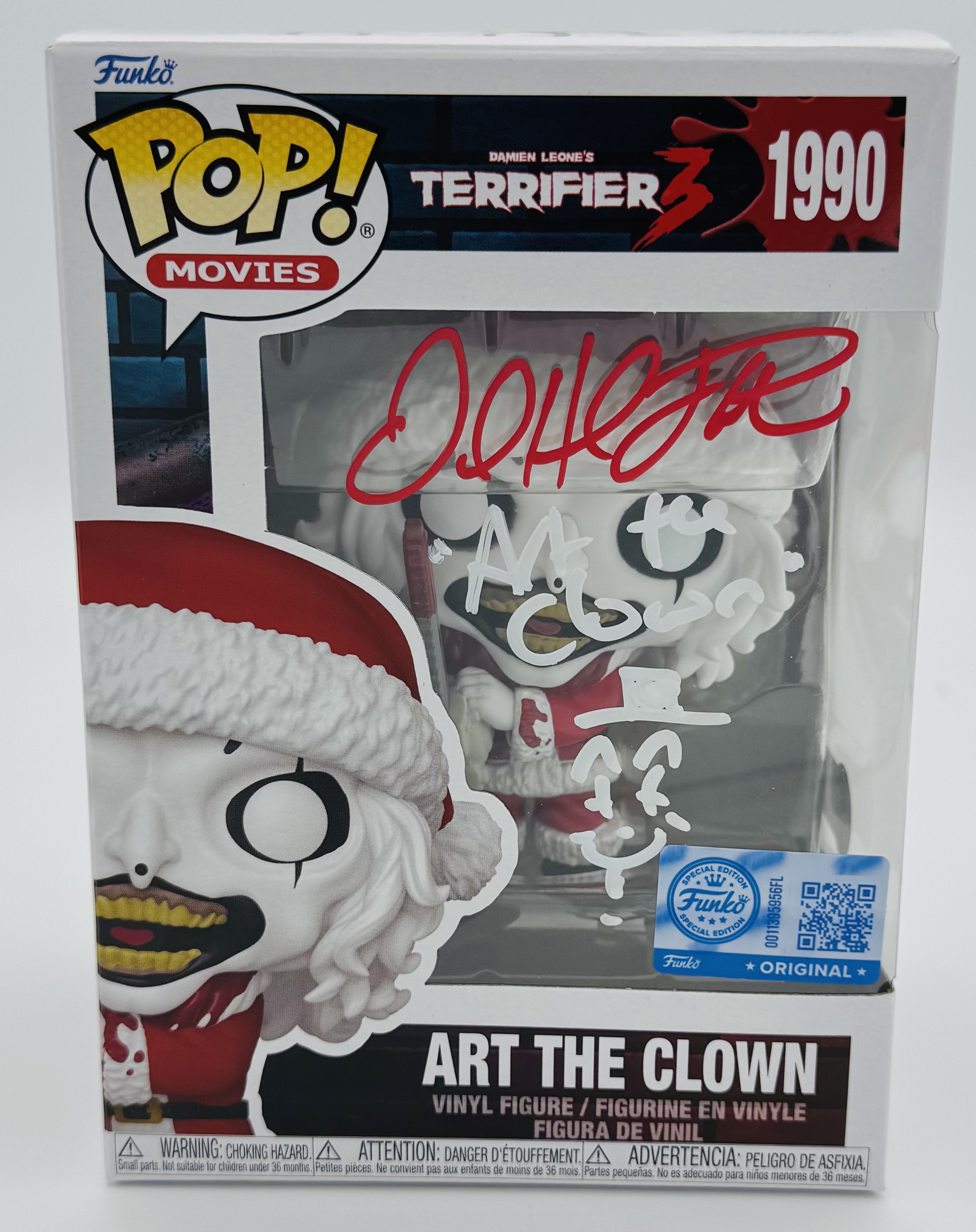 Secure this David Howard Thornton Signed Santa Art the Clown Funko Pop #1990 – Special Edition – BAS Certified today and add a rare and unique horror collectible to your collection.