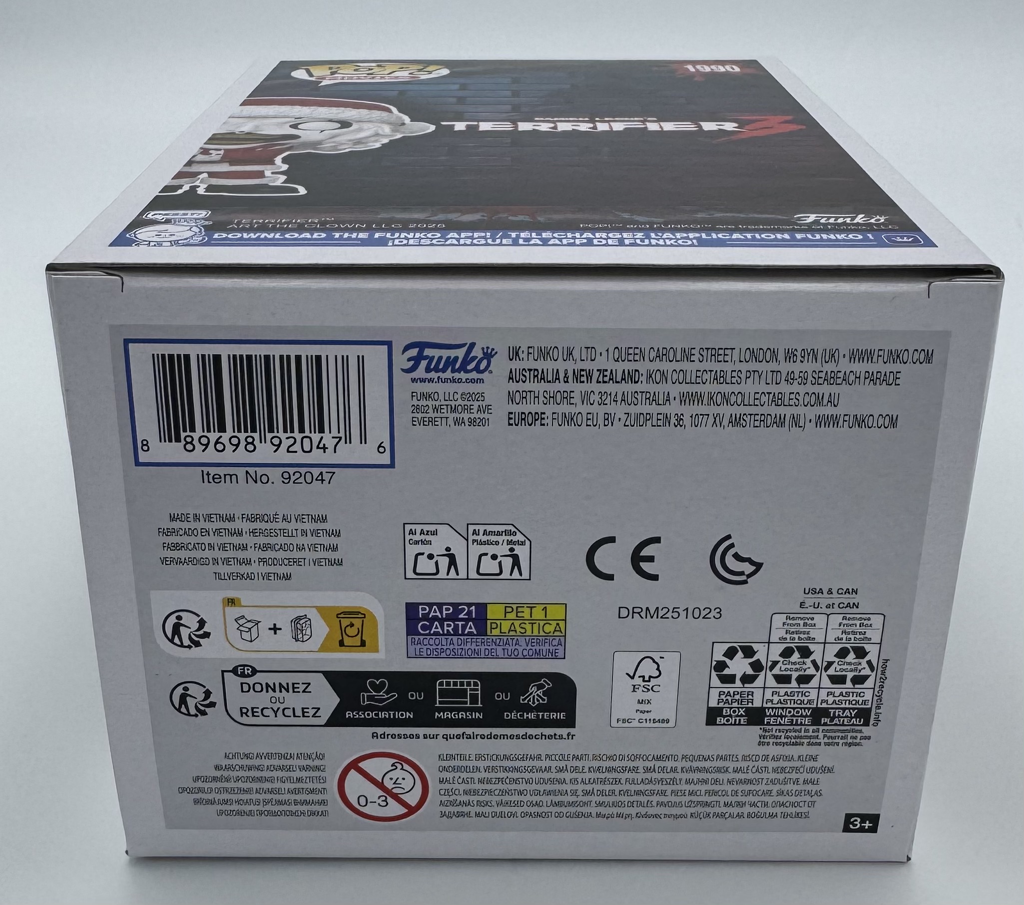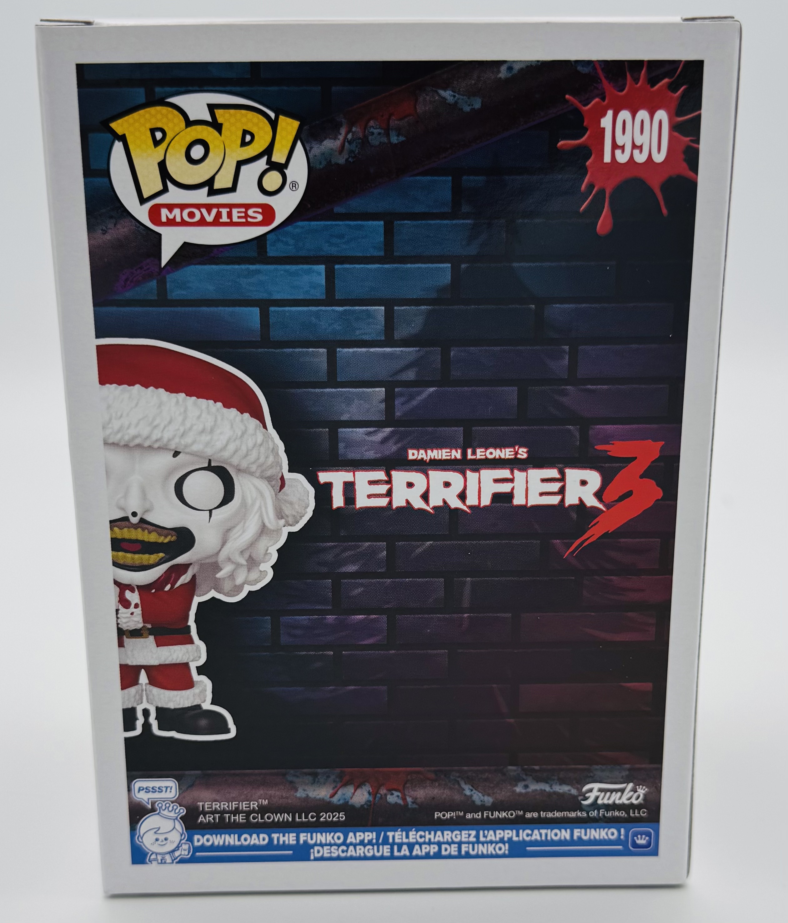 This Santa Art the Clown Funko Pop #1990 has been personally hand-signed by David Howard Thornton, who brought to life the terrifying character Art the Clown in the Terrifier film series, including Terrifier 3.