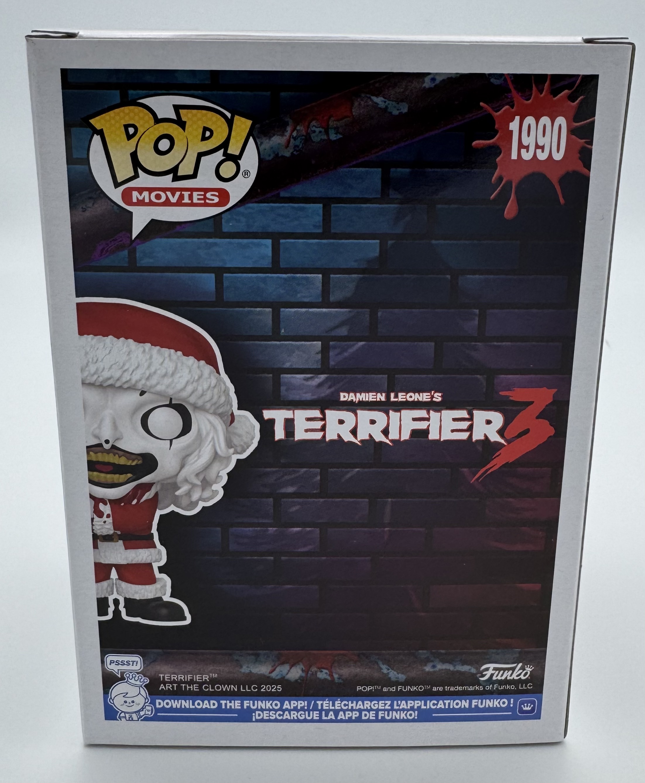 This Santa Art the Clown Funko Pop #1990 has been personally hand-signed by David Howard Thornton, who brought to life the terrifying character Art the Clown in the Terrifier film series, including Terrifier 3.