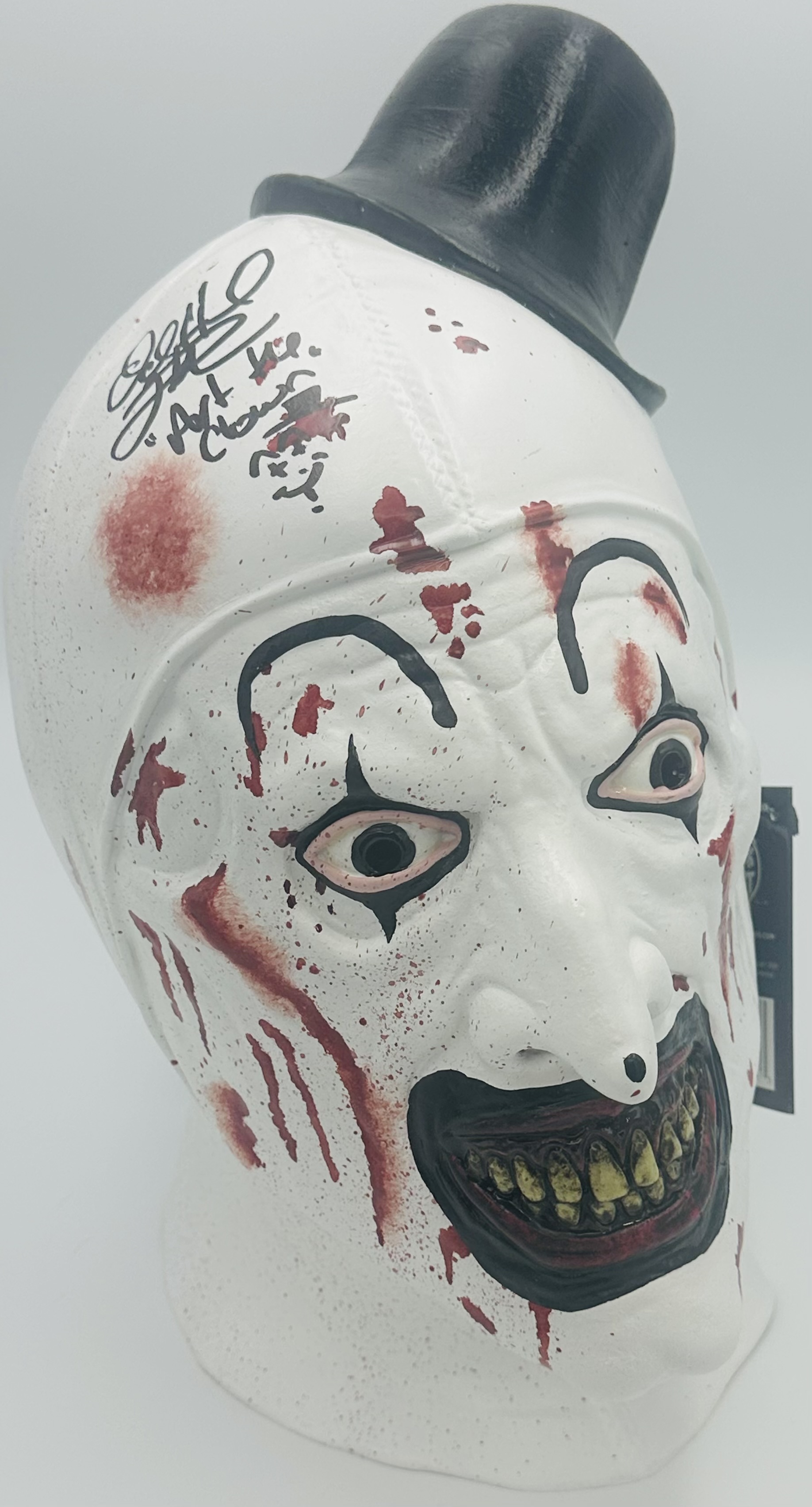 This Art the Clown mask has been personally hand-signed by David Howard Thornton, the actor behind Art the Clown in the Terrifier franchise.