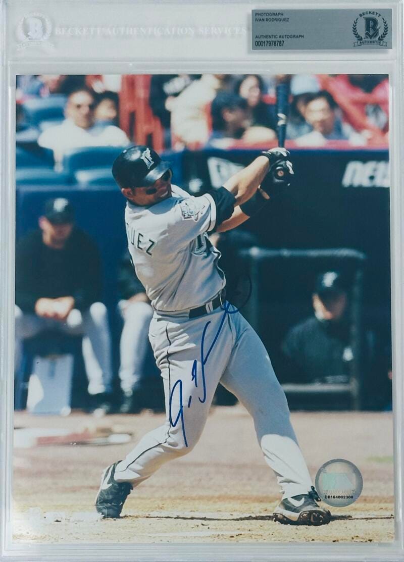 🎁 Why Collectors Choose Ivan Rodriguez Signed Bas Slabbed 8X10 Photo Marlins Texas Rangers Autograph