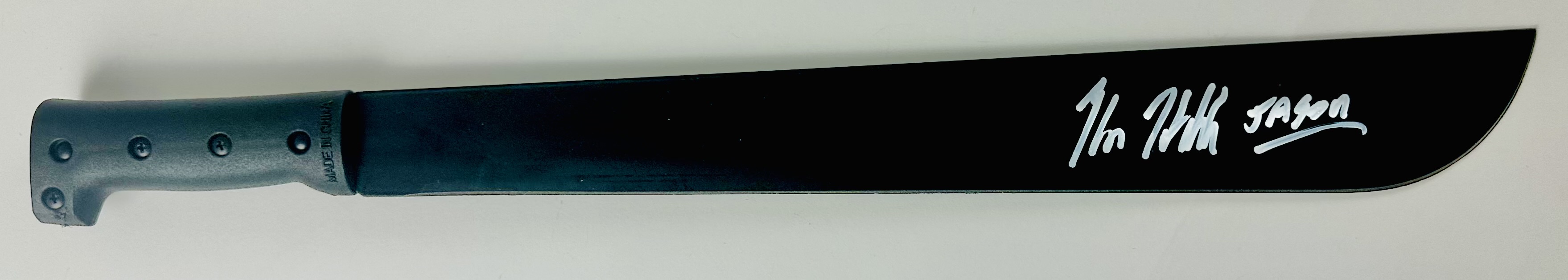 This 23″ machete has been personally hand-signed by Kane Hodder, best known for portraying Jason Voorhees in multiple Friday the 13th films.