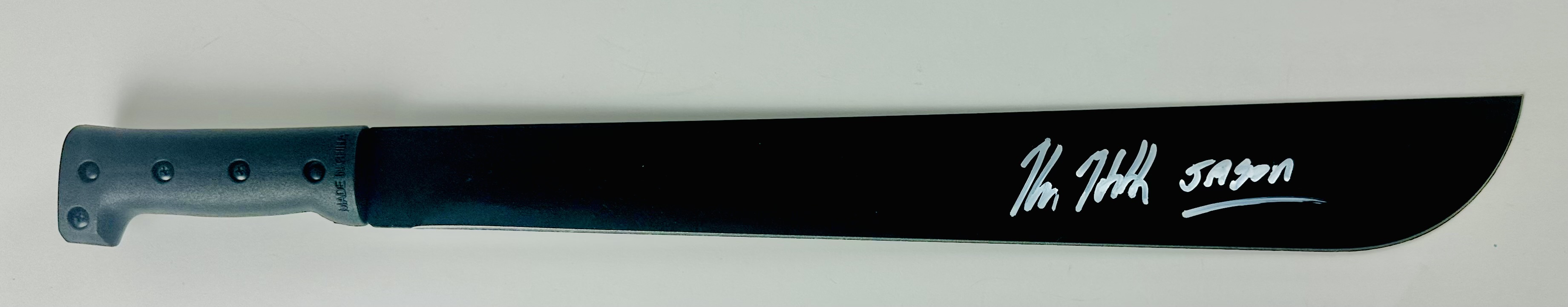 This 23″ machete has been personally hand-signed by Kane Hodder, best known for portraying Jason Voorhees in multiple Friday the 13th films.