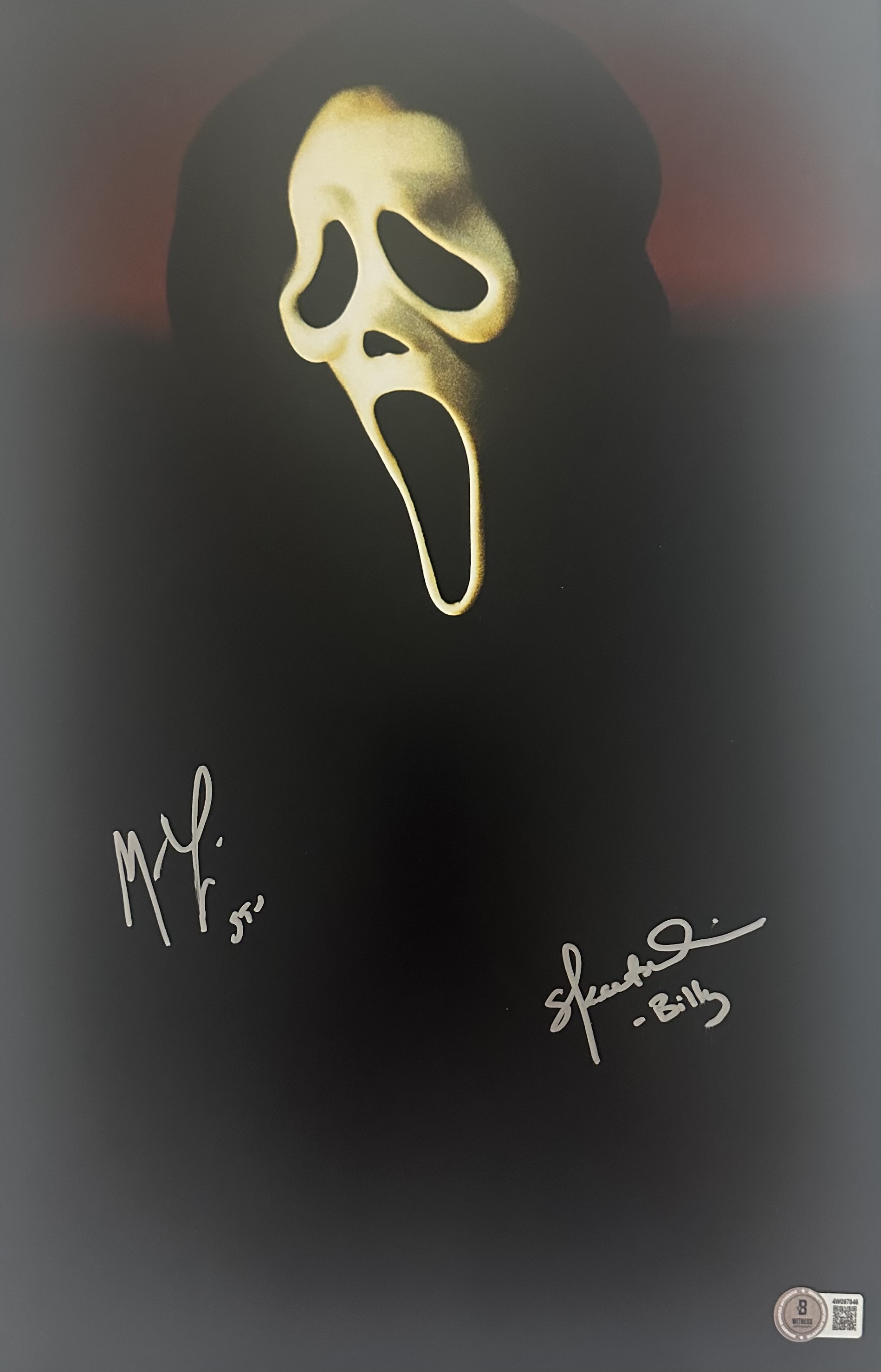 This 11×17 photo has been personally hand-signed by Matthew Lillard and Skeet Ulrich, who portrayed Stu Macher and Billy Loomis — the original Ghostface killers in Scream.