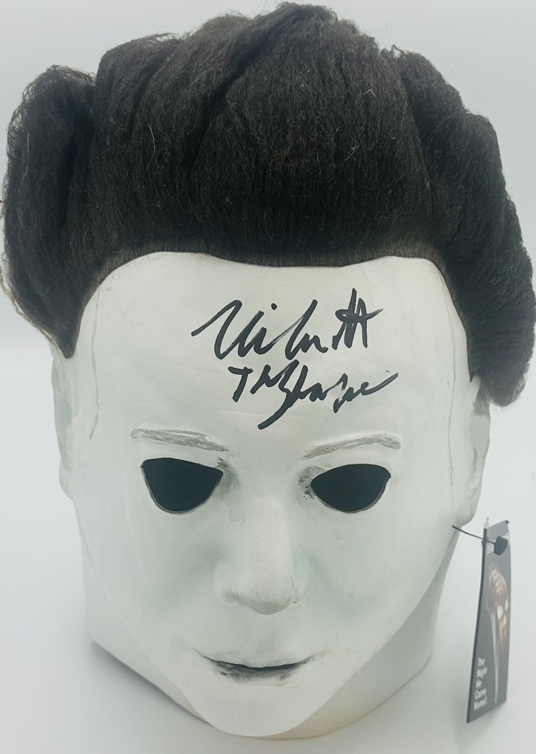 This Michael Myers mask has been personally hand-signed by Nick Castle, who portrayed Michael Myers in the original Halloween (1978).