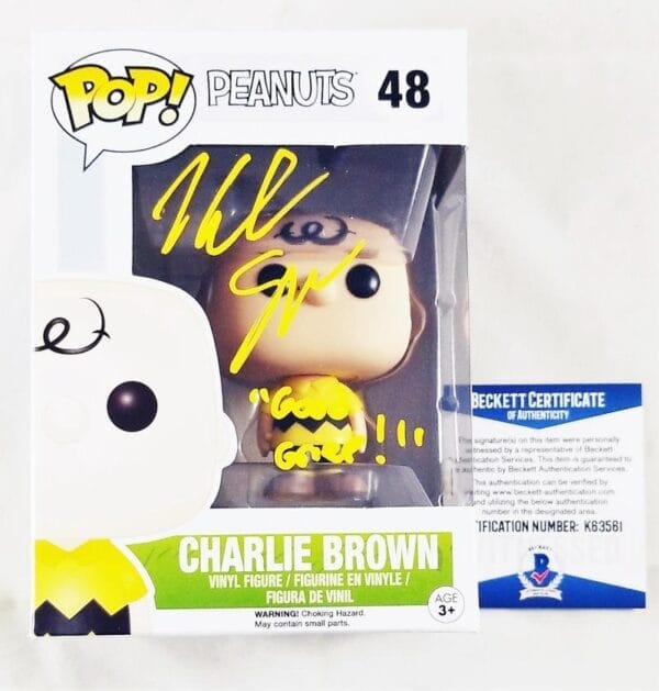š About Noah Schnapp Signed Charlie Brown Funko Pop Peanuts Bas