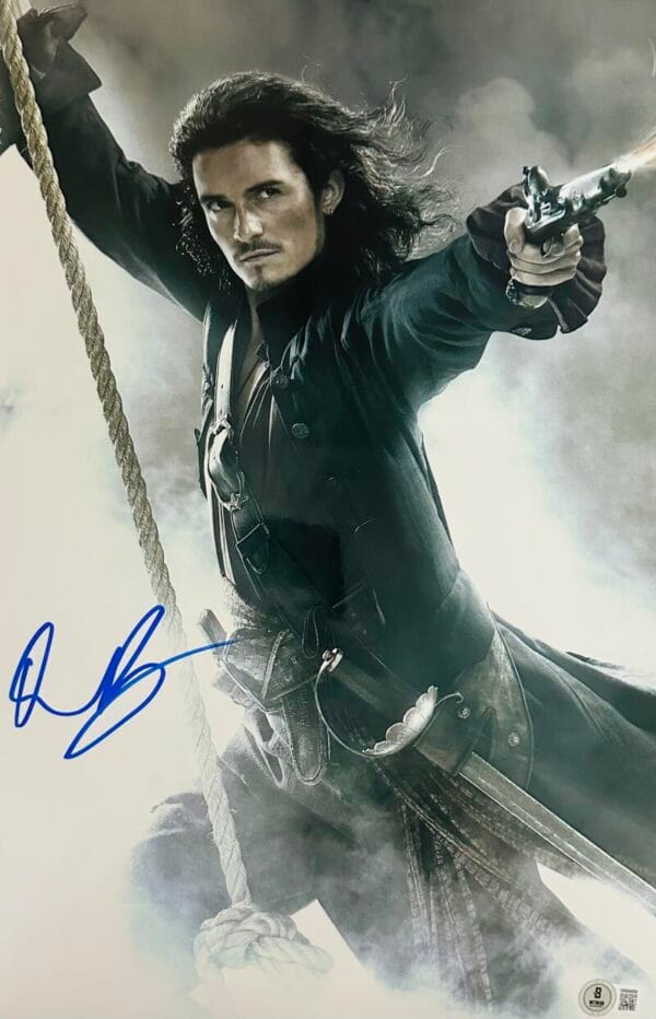 ORLANDO BLOOM SIGNED METALLIC 11X17 PHOTO WILL PIRATES OF THE CARIBBEAN BAS 884