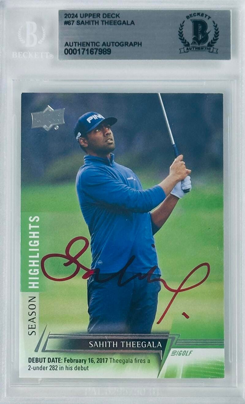 ā This Sahith Theegala Signed 2024 Upper Deck On Card Auto Trading Rc Card represents the pinnacle of what serious collectors seek: authentic, verified, display-ready memorabilia with investment-grade appeal and market recognition.